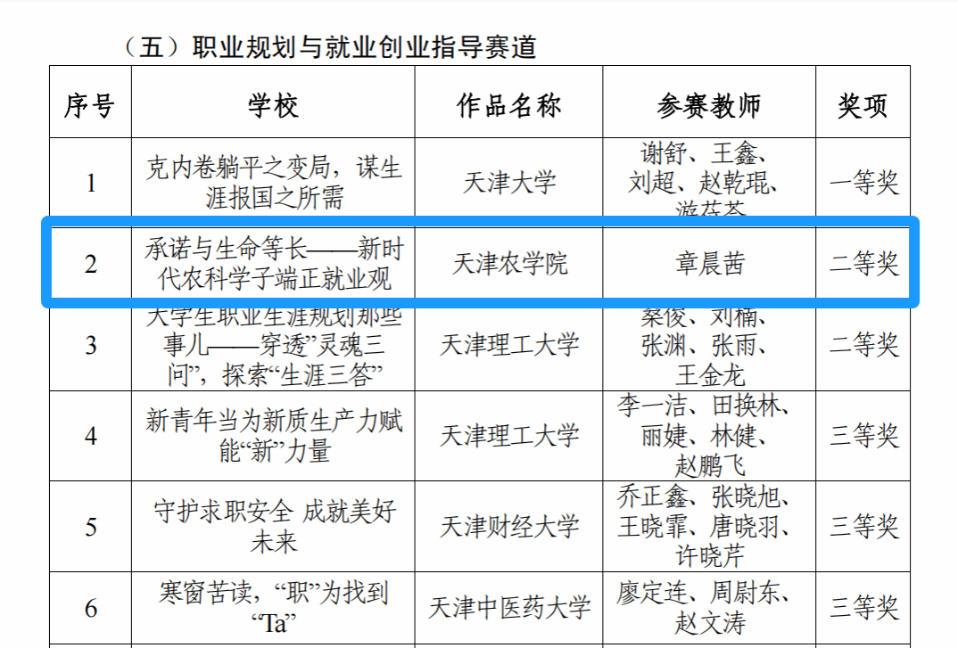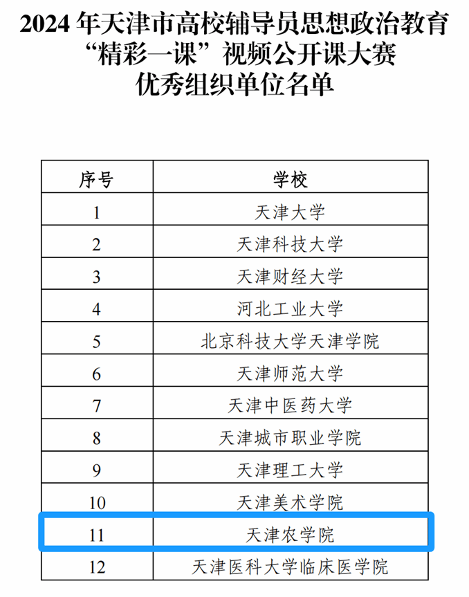 为聚焦时代热点话题,深入学生一线,了解学生所思所想,直面学生的困惑症结,深化爱党爱国爱社会主义教育,在天津市举办的2024年高校辅导员思想政治教育“精彩一课”视频公开课大赛中,我校荣获“优秀组织单位”,我校辅导员章晨茜老师获职业规划与就业创业指导赛道二等奖,辅导员刘柳老师获学风建设赛道优秀奖。