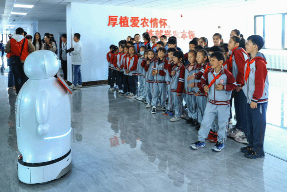 仪式结束后,我校“润心”辅导员工作室组织5所小学师生在校园内开展研学参观,感受我校“思源·奋进”文化氛围,让孩子们触摸到科技兴农的时代脉搏。在征兵工作站,小学生们共同观看学校征兵工作宣传片,并讲述自己绘制的“缅怀先烈”“禾下承志”等手抄报。在食品科学与生物工程学院仪器分析实验室,老师们讲述了食品科学在守护“舌尖上的安全”中发挥的重要作用;在水利工程学院虚拟仿真实验教学中心,老师们利用AR技术向同学们科普水利知识、航道知识,共同体验节水技术;在计算机与信息工程学院数字乡村与智慧农业实验室,小学生们观摩了焦种猪健康养殖智能监测机器人和肉鸡笼养模式智能巡检机器人,并亲自“指挥”巡检车,感受科技助农的“魔法”。