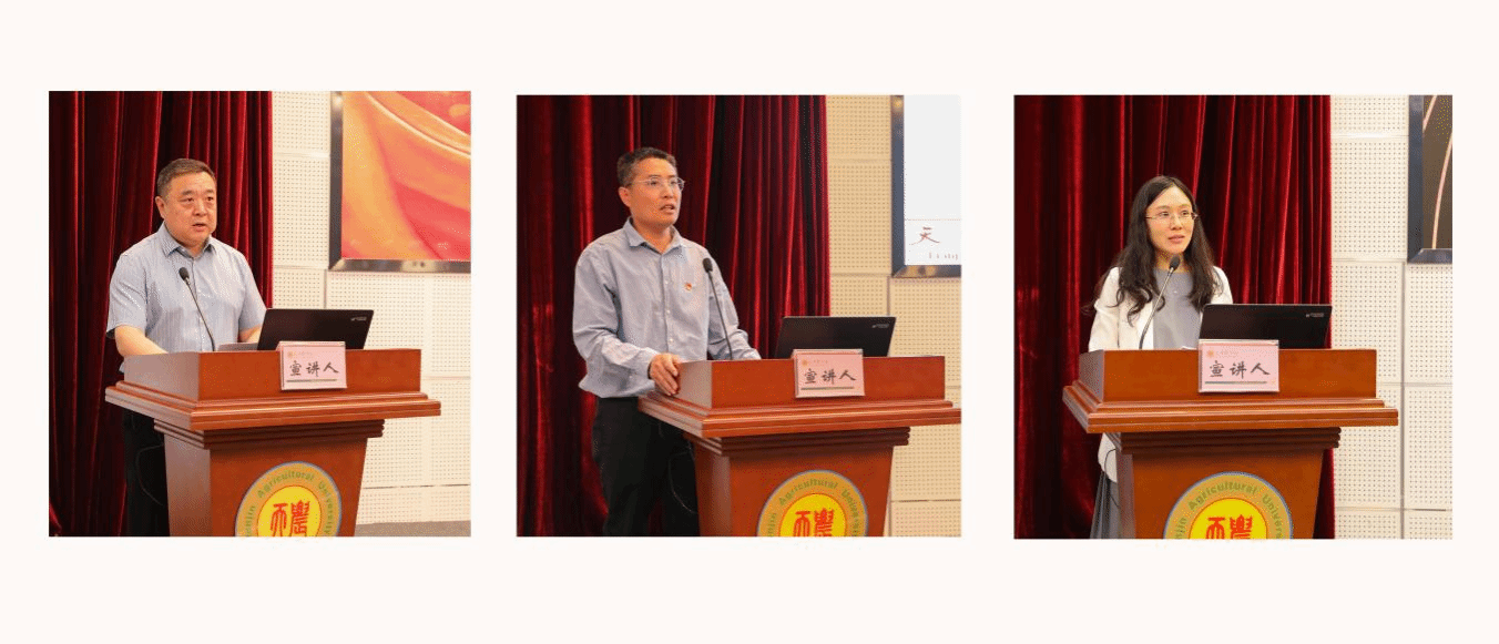 5月23日上午,我校举办“天农榜样・先进事迹宣讲”活动首场宣讲会。宣讲以“大力弘扬教育家精神 加快建设教育强国”为主题,邀请基础科学学院党委副书记、院长石军,农学与资源环境学院副院长、农学系党支部书记葛均筑和马克思主义学院教师艾博作为荣获天津市和校级先进集体及个人荣誉称号的代表进行宣讲。校党委副书记宋涛出席宣讲活动。