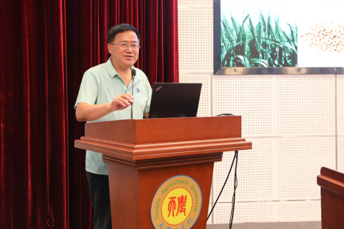 6月16日,国际著名植物生物学家、美国科学院院士、北京大学现代农业研究院院长邓兴旺教授应邀做客我校“天农名家讲堂”,作了题为《全面开展作物精准分子设计育种》的学术报告。校党委书记李鑫、中国农业科学院生物所黄荣峰研究员出席报告会。校党委副书记、校长金危危教授主持报告会。