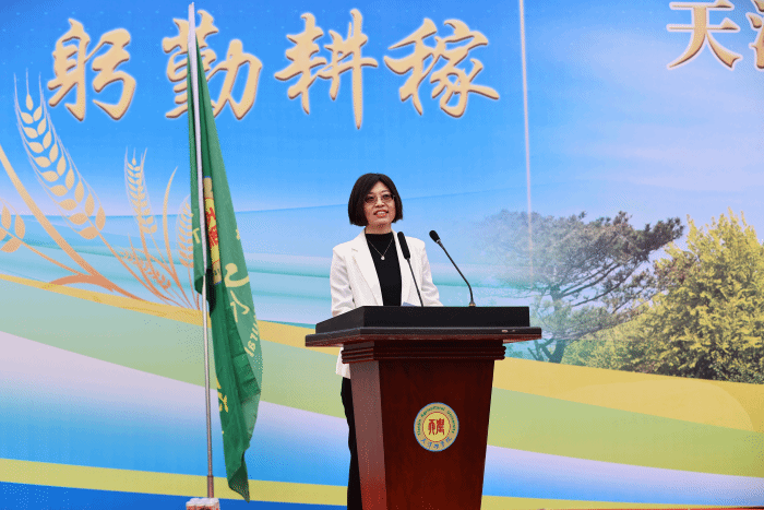 我校经济管理学院李彩霞教授作为教师代表发言。她希望迈入大学校园的新同学要勤于学习,善于思考,修炼“德商”(MQ)、提升“智商”(IQ)、培育“情商”(EQ)、启迪“灵商”(SQ),在天农这片沃土的滋养下成长成才。