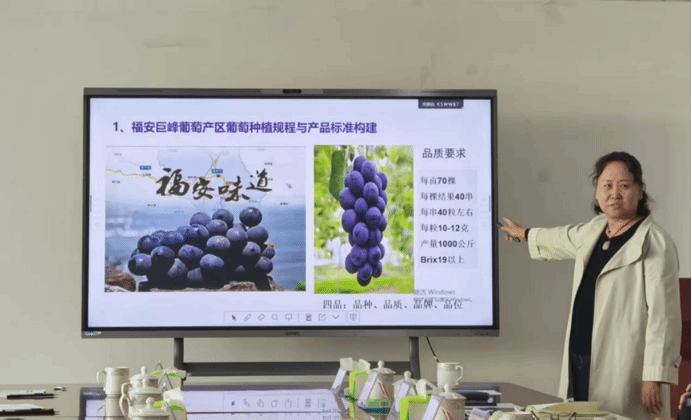 田淑芬研究员围绕巨峰葡萄安全高品质种植规范、产品标准及产销对接全产业链标准建设等方面介绍了葡萄科研创新团队的科研工作,以及与福安市合作开展项目的情况。
