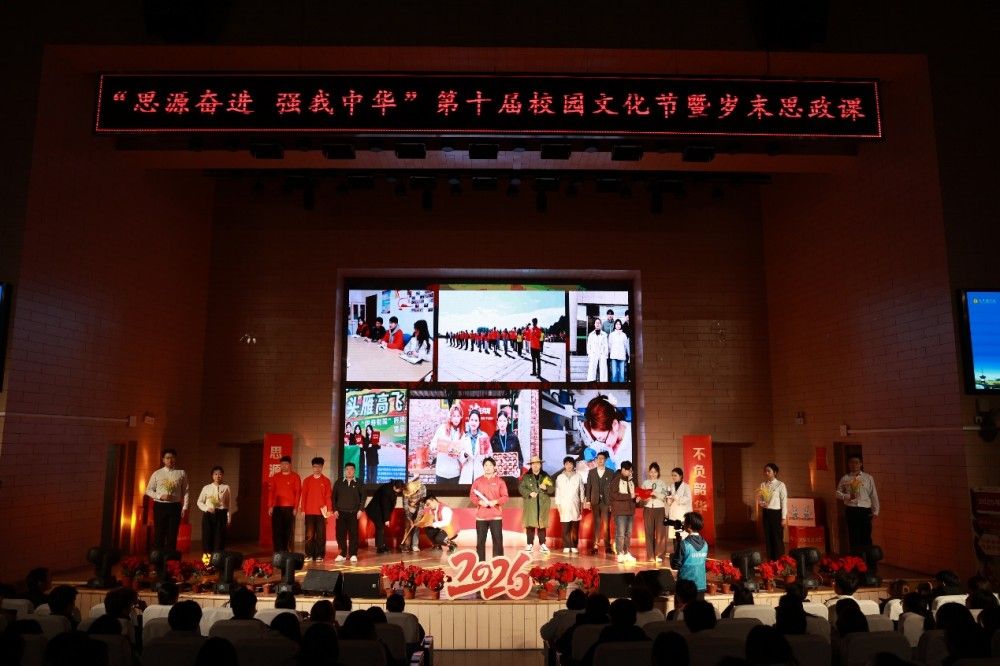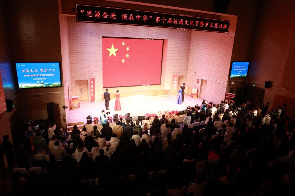 在全体师生起立、齐声高唱《歌唱祖国》的歌声中,“思源奋进 强我中华”第十届校园文化节暨岁末思政课圆满落下帷幕。