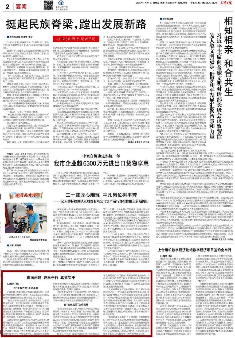 《天津日报》头版报道,深入贯彻中央八项规定精神学习教育开展以来,我校把学习教育作为重大政治任务,认真谋划安排、精心组织实施,以更高标准更实举措一体推进学查改,不断将学习成果转化为推动教育事业高质量发展的生动实践。