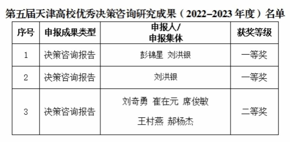 我校有3项成果入选第五届天津高校智库优秀决策咨询研究成果(2022-2023年度)名单,其中一等奖2项,二等奖1项。