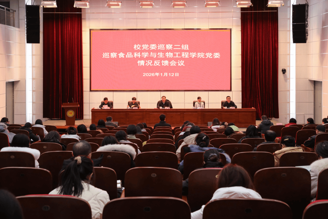 根据校党委统一部署,2025年10月31日至2025年12月31日,校党委巡察组对农学与资源环境学院党委、食品科学与生物工程学院党委开展了常规巡察,并于2026年1月12日完成反馈。校党委书记、巡察工作领导小组组长李鑫,校党委副书记、巡察工作领导小组副组长宋涛分别出席反馈会议并讲话。