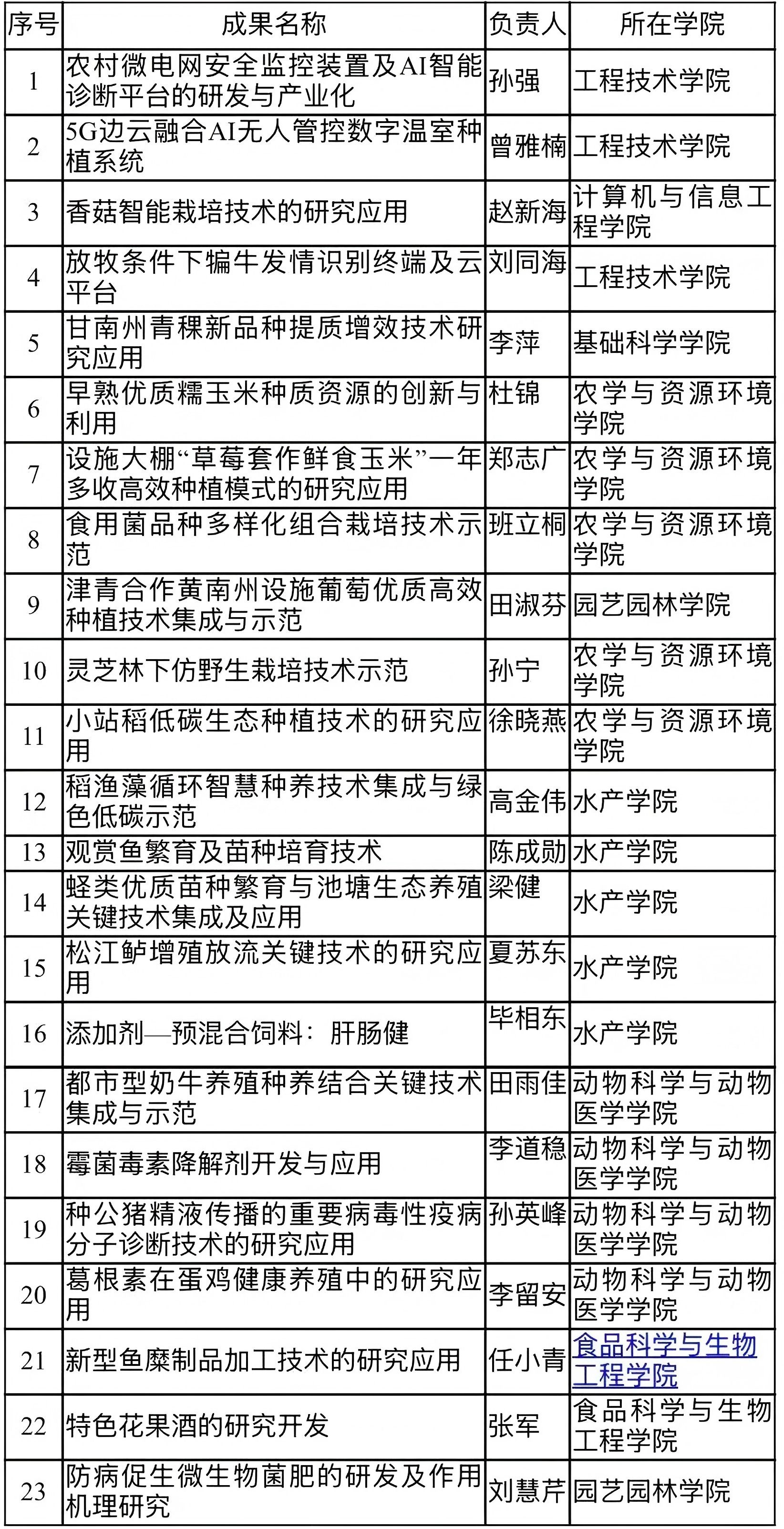 我校23项成果入选天津市农业科技特派员优秀科技成果