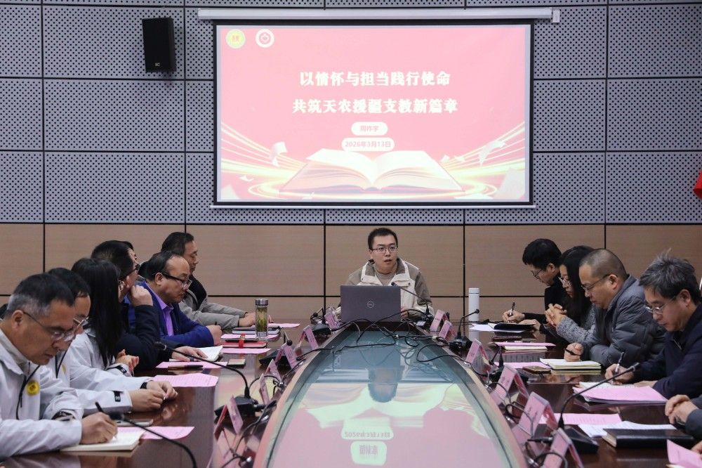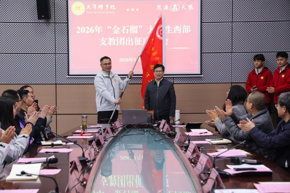 李鑫代表校党委向即将光荣出征的全体支教团师生致以诚挚祝福和崇高敬意。他指出,教育援疆是党中央着眼党和国家事业发展全局作出的重大战略部署,是完整准确全面贯彻新时代党的治疆方略的重要抓手,是推进文化润疆、铸牢中华民族共同体意识的关键举措。自2020年以来,一批批天农学子以青春之名赴边疆之约,在三尺讲台践行初心使命,在戈壁荒漠书写责任担当,为民族地区基础教育贡献青春力量。在支教团启程之际,向支教团师生提出五点希望:一是提高政治站位,筑牢思想根基,做信念坚定的践行者。要将政治信仰、家国情怀贯穿支教工作全过程,以实际行动践行新时代青年的政治忠诚与使命担当。二是厚植民族情谊,促进交往交融,做民族团结的守护者。主动与各族师生结对交流,在朝夕相处中增进感情,在共同学习生活中凝聚共识,做到手足相亲、守望相助。三是坚守育人初心,深耕三尺讲台,做培根铸魂的引路人。秉持严谨治学态度,用心用情用力上好每一堂课,做学生成长路上的良师益友。四是弘扬天农精神,砥砺过硬作风,做艰苦奋斗的实干家。发扬不怕苦、能吃苦、敢担当、善作为的优良作风,在艰苦环境中磨砺意志、锤炼品格、增长才干。五是严守纪律规矩,坚守安全底线,做天农形象的代言人。要将纪律挺在前面,把工作标准调整到最高,把精神状态调整到最好,把自我要求调整到最严,做到让组织放心、让母校放心、让家人放心。他勉励全体支教师生牢记学校嘱托,勇担责任使命,以实际行动书写教育援疆的天农篇章。学校将始终是支教团师生最坚强的后盾,期待大家载誉而归。