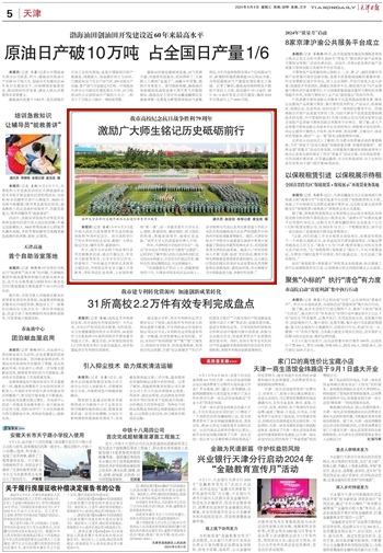 2024年9月4日,《天津日报》报道我校举行中国人民抗日战争暨世界反法西斯战争胜利79周年纪念日活动,激励广大师生铭记历史、缅怀先烈、砥砺前行。
