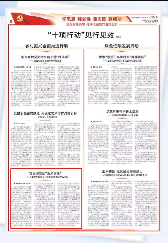 2023年12月29日,我校农学与资源环境学院杜锦老师的科技帮扶事迹在《天津日报》《天津教育报》“十项行动”见行见效栏目刊发。