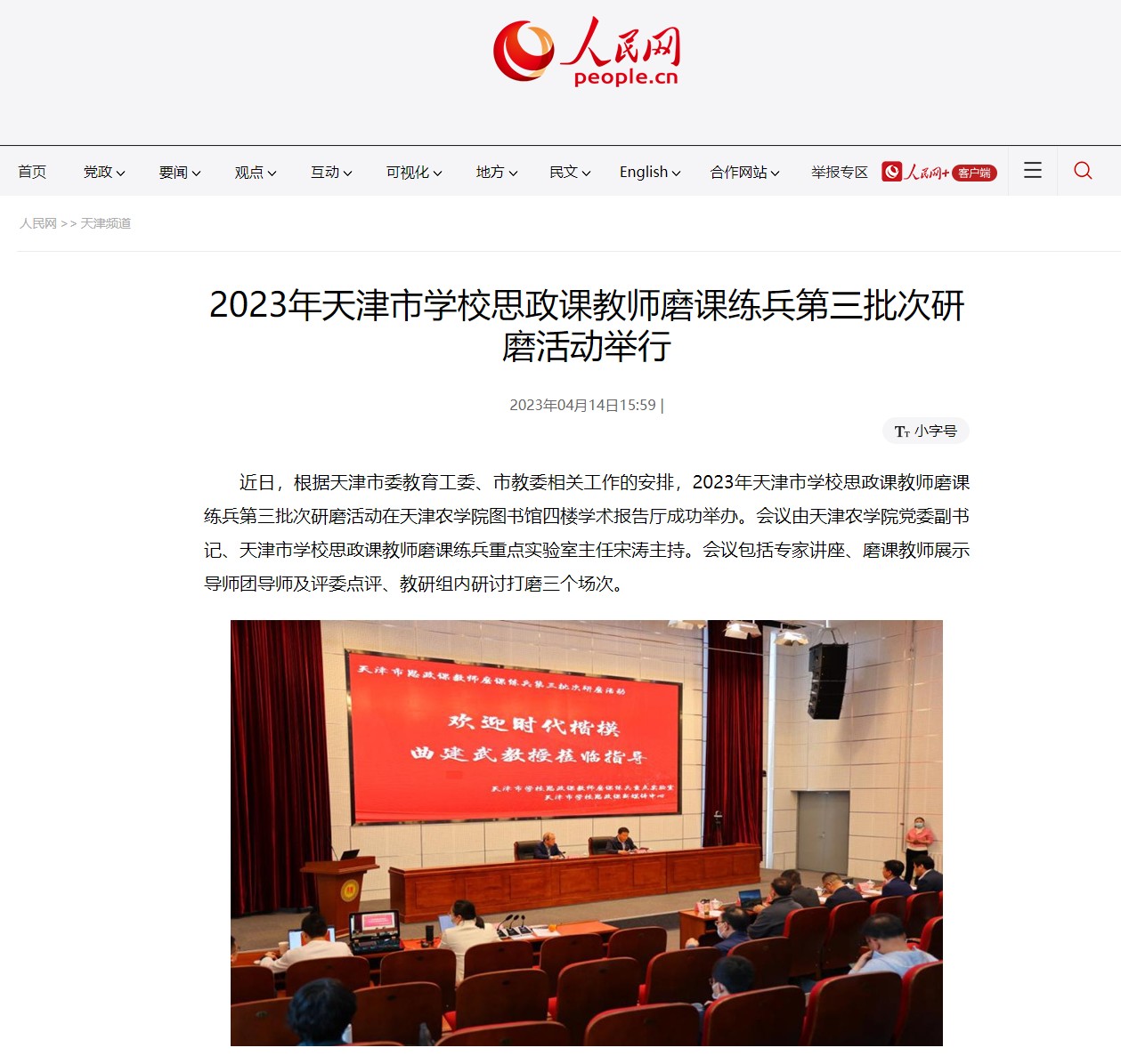 2023年04月14日人民网天津频道报道2023年天津市学校思政课教师磨课练兵第三批次研磨活动在我校举行。