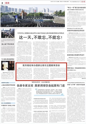 《天津日报》报道我校举办国家公祭日主题教育活动