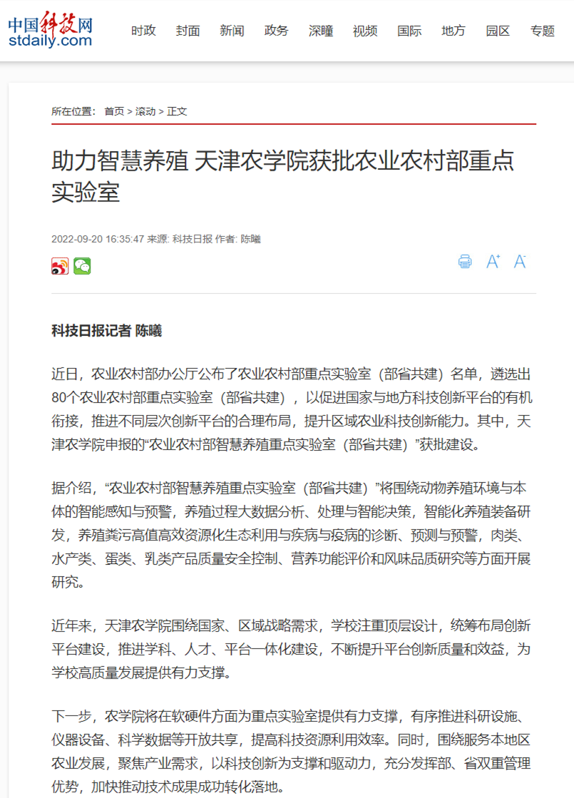 据介绍,“农业农村部智慧养殖重点实验室(部省共建)”将围绕动物养殖环境与本体的智能感知与预警,养殖过程大数据分析、处理与智能决策,智能化养殖装备研发,养殖粪污高值高效资源化生态利用与疾病与疫病的诊断、预测与预警,肉类、水产类、蛋类、乳类产品质量安全控制、营养功能评价和风味品质研究等方面开展研究。