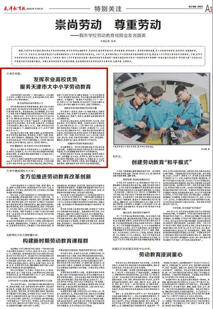 《天津教育报》报道我校发挥优势服务天津市大中小学劳动教育经验做法
