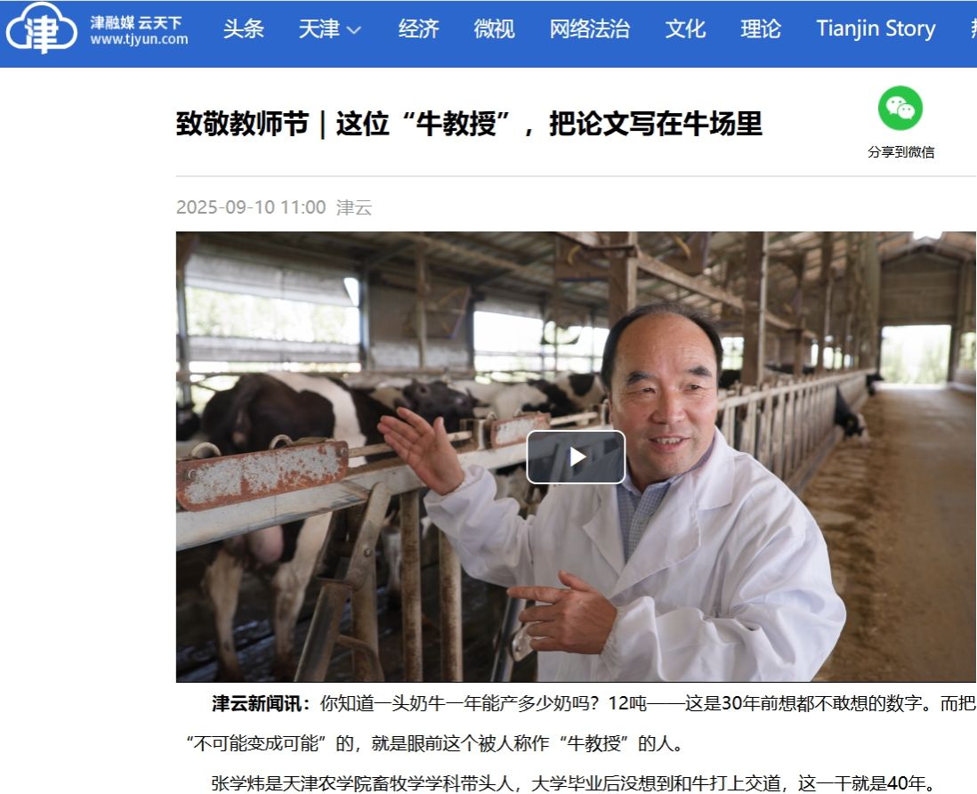 2025年9月10日,津云报道我校动物科学与动物医学学院张学炜老师教书育人工作。