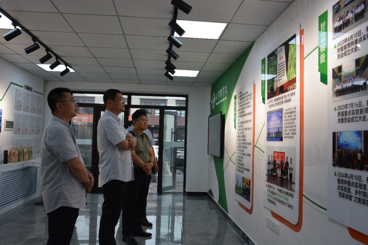 王繁珍在大北农(黑龙江)国际农业科技成果交易有限公司总经理徐万涛、副总经理迟权伟的陪同下参观了我校在世界农业科技成果交易中心的展厅。