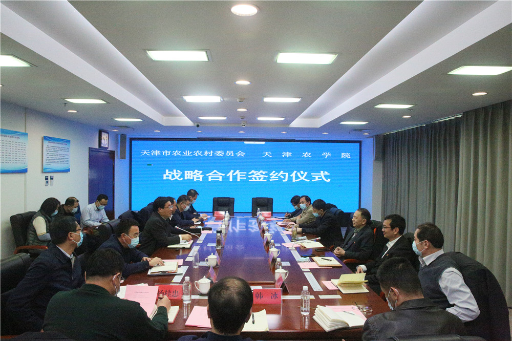 3月4日上午,我校与天津市农业农村委员会战略合作签约仪式在市农业农村委举行。校党委书记王延文,市农业农村委党委书记、主任王宝雨,校党委常委、副校长(主持工作)金危危,市农业农村委党委委员、副主任李志荣出席签约仪式。金危危和李志荣代表双方签署战略合作协议书。