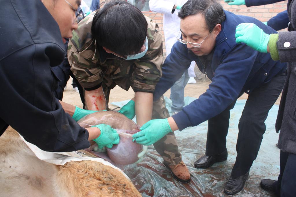 潜心走好从肉牛种业到肉牛养殖产业的科研之路从事科研工作以来,郭宏教授深刻认识到种业是增强我国农业核心竞争力的基础,适逢2008年国家开始启动国家转基因重大专项高产转基因肉牛新品种培育,郭宏教授作为主要研究者带领团队参加了这一国家战略性项目。12年来,不忘初心,矢志不渝,不分昼夜,没有节假日,他带领团队奋战在科研一线。最终和内蒙古大学合作成功培育出基因编辑MSTN的“双肌牛”鲁西黄牛、蒙古牛和中国西门塔尔牛三个品系,“双肌牛”的产肉量平均提高25-30 %,并且从分子水平解释了“双肌牛”促进肌肉发育的机制,2020年经农业部组织的专家鉴定,成果达到同行国际领先水平。这一品种的研制为国家肉牛品种培育奠定了基础,为解决肉牛种业“卡脖子”的问题贡献了力量。为了尽快将科学技术应用于生产实践,他带领团队成员利用多组学探究肉牛肌肉生长发育的机制,在肉牛生物育种的基础研究和应用基础研究方面迈出了可喜的一步。研究成果在内蒙古自治区的多伦县、正蓝旗和乌审旗、天津、河北、山西等多个省市推广。