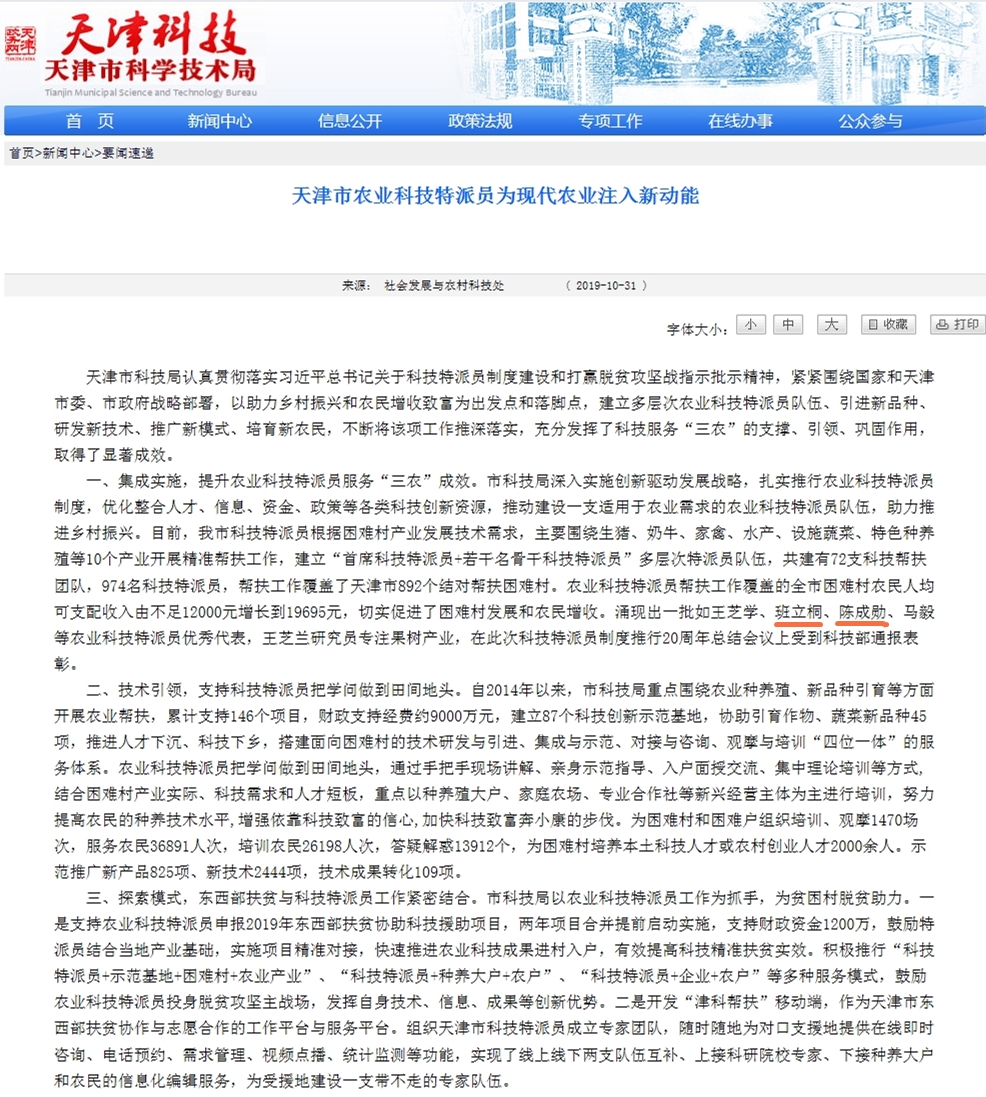 近日,我校陈成勋教授科技帮扶工作受到市科技局肯定,全文如下: