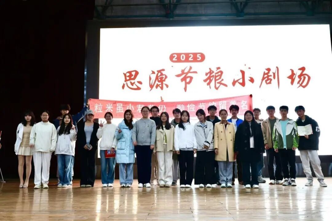以青春示范,演活节约担当。计算机与信息工程学院2025级10个班级的同学全员参与,设计了10个剧本,把剧场分为四个篇章:穿越未来篇、历史传承篇、食堂日常篇、创意传播篇。一个个场景诠释“珍惜粮食”的多层深意,更以青春姿态示范节约的行动力。