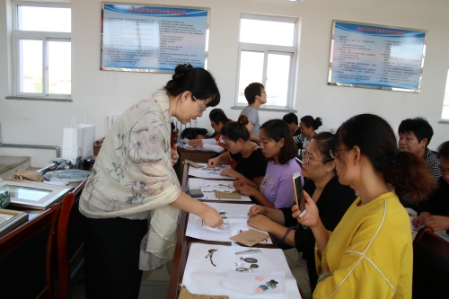 刘峄从方方面面讲解了压花知识,涉及到花材的选取,压花过程中花瓣的摆放,胶水的使用以及晾干时注意的事项,并向学员们展示了自己的压花作品,激发了大家的学习热情。刘峄语言诙谐幽默,妙趣横生,在场的妇女群众们听得全神贯注,认真做着笔记,并不时与老师交流互动,气氛十分活跃。