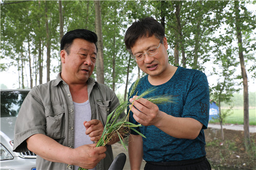 5月15日,周学永教授第三次来到蓟州区下仓镇,和帮扶组组长孔凡涛和村民一起仔细观察了后屯村小麦的生长情况,发现长势喜人。由于小麦正处于扬花的关键时期,病害防治不能松懈。周教授告诉村民,在土传病害控制住之后,下一步要特别警惕气传病害,针对于未来高温多雨天气,建议村民们做好白粉病、锈病的预防工作。同时要做好蚜虫的预报工作,一旦发现病虫害应立即采取相应防治措施,避免病虫害范围扩大,争取获得好收成。