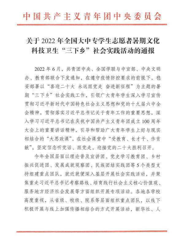 今年,我校以“喜迎二十大 永远跟党走 奋进新征程”为主题共组建国家级、市级、校级团队254支,共有1500余名同学深入农村、社区、企业开展暑期社会实践活动,助力乡村振兴,为建设美丽中国贡献青春力量。(校团委供稿;文字:李定军;编辑:黄宝霞;审校:田健 王善科)